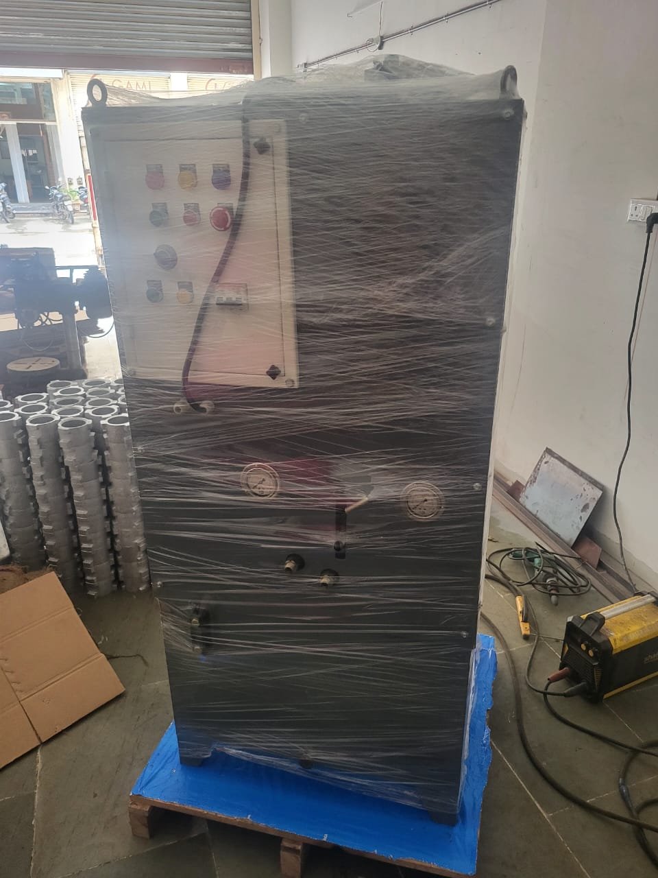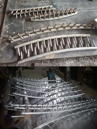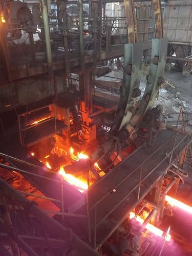 The Continuous Casting Machine / Billet Casting Machine / Concast Machine is an equipment to convert liquid steel into cast semis of the desired size. Molten Steel from the furnace is poured at correct temperature into the Ladle and the Ladle Slide Gate is opened so as to allow the liquid metal to flow into the Tundish, which then allow it to the mould assembly through refractory nozzle. A tundish car is provided to transport the tundish to the Casting Station. Steel stream from the tundish is taken through the mould assembly which houses the curved copper mould tube to give the required shape of the section being cast. :